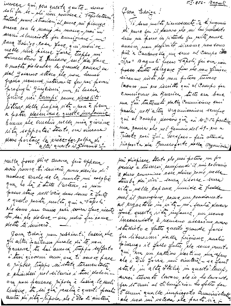 lavoro mi ero iscritto qui al Campo per emmigrare in America, tutto era bene ma fui trattenuto