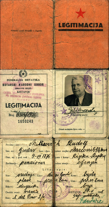 Carta d'identità iugoslava del 1948, con l'ultima residenza