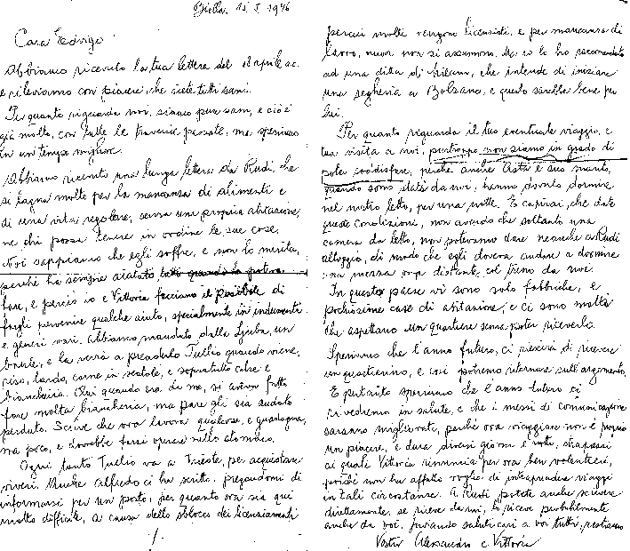 Ogni tanto Tullio va a Trieste per acquistare viveri. Anche Alfredo ci ha scritto ...